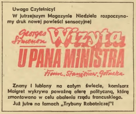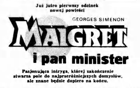 To chyba najbardziej nietypowy „Maigret” – nie ma tu żadnego morderstwa, a komisarz porusza się w kręgach, które wywołują w nim ogromną niechęć; w pewnym momencie „poczuł niemal sympatię do tych drobnych złodziejaszków, maniaków, oszustów, złoczyńców wszelkiej maści, z którymi zwykle miał do czynienia”. Trudno jednoznacznie ocenić tę książkę, poza tą nietypowością nie ma w niej nic, co na dłużej utkwiłoby w pamięci – jest kilka dygresji dotyczących przeszłości komisarza, jest zastanawiające podobieństwo Maigreta do ministra Pointa zarówno pod względem wyglądu, jak i pochodzenia, jest też towarzyszące komisarzowi napięcie powodujące, że czuje on ciarki na plecach, jest też intrygujący opis działania przodka kserokopiarki – ale nie ukrywam, że dwa tygodnie po przeczytaniu tej książki nie pamiętałem jak ona się skończyła. To nie jest zła książka, ale po prostu przelatuje przez głowę niczym wiatr; myślę więc, że zainteresować może tylko wielbicieli komisarza.