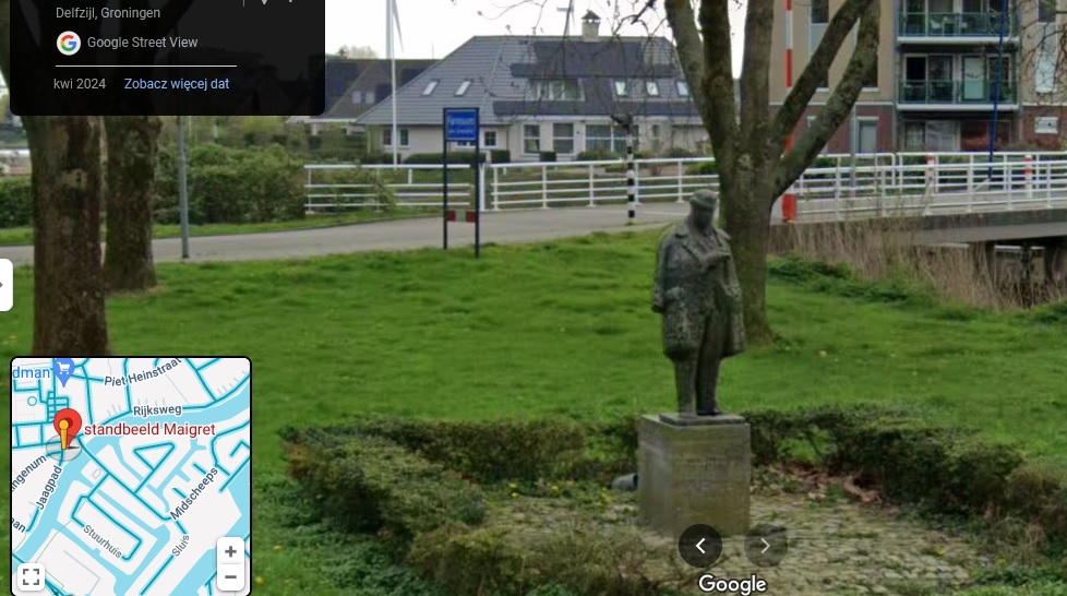 Czy tak było naprawdę? Biografowie Simenona mają na ten temat różne zdania, autor pisał w tym czasie tyle książek, że mogło mu się coś pomylić – Holendrzy jednak nie zaprzątali sobie tym głów i 3 września 1966 roku odsłonili w Delfzijl rzeźbę Maigreta. Komisarz nie jest duży, ma jakieś 120 centymetrów wysokości i stoi na kamiennym cokole pośrodku trawnika; króciutki film z odsłonięcia pomnika można znaleźć w internecie. Gdy kiedyś będę w okolicach Groeningen, to pewnie skręcę w stronę morza i zrobię sobie zdjęcie z komisarzem:-)