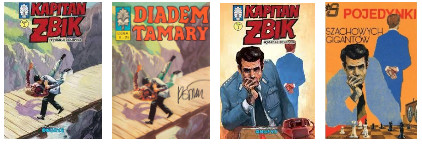 Ciekawostką jest, że zbiorczy tom wydał „Ongrys” z trzema różnymi okładkami. Poniżej prezentuję dwie pozostałe. Pierwsza jest autorstwa Grzegorza Rosińskiego, a pochodzi z komiksu „Diadem Tamary”. Druga zaś jest rewelacyjną przeróbką rysunku Zbigniewa Sobali z okładki książki „Pojedynki szachowych gigantów”.