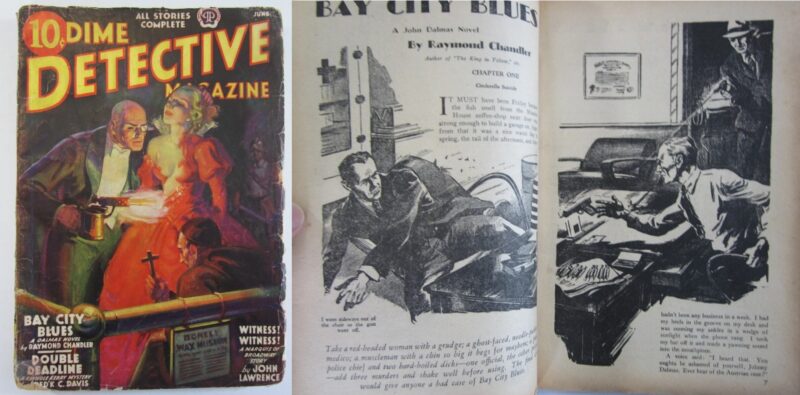 16. „Bay City Blues” (czerwiec 1938) – były detektyw Harry Matson znajduje zaczadzone spalinami zwłoki żony doktora Austriana ale uważa, że to nie było samobójstwo; podejrzewa też, że paru ludzi chce go zabić i dlatego wynajmuje do sprawdzenia tych faktów Johny’ego Dalmasa. Wkrótce Matson faktycznie zostaje zabity, ginie także jego żona; śledztwo Dalmasa prowadzi go do doktora i jego żony przepuszczającej na ruletce jego pieniądze. Przesadnie manieryczna, przekombinowana, przeładowana postaciami i po prostu nie najlepsza historia; ciekawostką jest to, że Chandler zawarł tu swoje złe wrażenia z mieszkania w latach trzydziestych w Santa Monica; zresztą tytułowe Bay City nie raz u niego było odbiciem złych cech miasta – to właśnie tu ojciec Anny Riordan z powieści „Żegnaj, laleczko” został zmuszony do odejścia z policji.