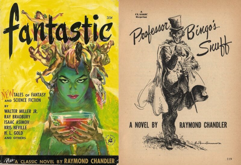 23. „Używka Profesora Bingo” (czerwiec 1951) – Joe Pettigrew jest zdradzany przez żonę. I kiedy tajemniczy profesor August Bingo ofiarowuje mu pudełko tajemniczego proszku po wciągnięciu którego człowiek staje się niewidzialny, wykorzystuje ten fakt do zastrzelenia kochanka. Plan nie jest jednak idealny, bo kochanek chwilę wcześniej udusił kobietę i policjanci z miejsca podejrzewają Pettigrewa o obydwa zabójstwa. Opowiadanie wydane w 1951 roku, ale pytanie w którym napisane – do końca nie wiem, o co Chandlerowi chodziło i co chciał w nim powiedzieć. Najciekawsze wydaje się być słuchowisko jakie stworzono na podstawie tego opowiadania i wyemitowano 19 czerwca 1993 roku w niezapomnianym Teatrzyku Zielone Oko; zainteresowani mogą je znaleźć na YouTube: Krzysztof Chamiec jako Joe Pettigrew, Krzysztof Kołbasiuk jako porucznik Waldman, ale prawdziwa perła to Wiesław Drzewicz – profesor Bingo z głosem Gargamela – bezcenne!